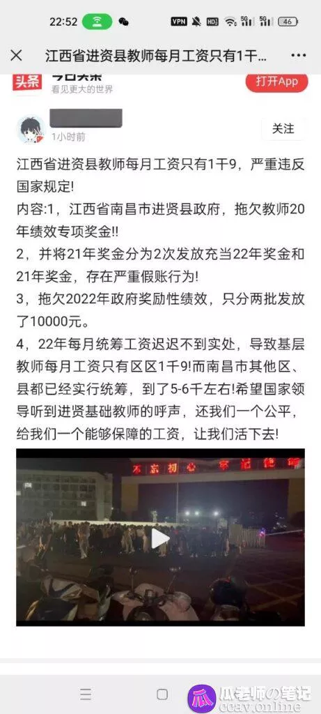 江西南昌进贤一中二中的教师进行大罢工疑似拖欠工资