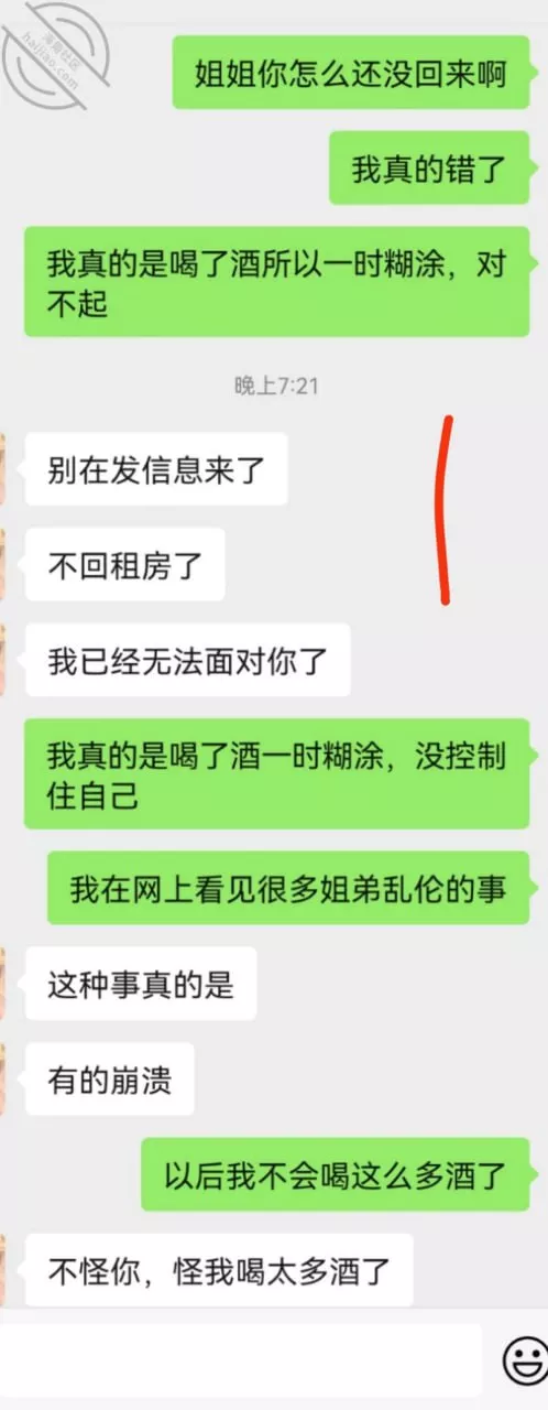 由于昨天晚上和姐姐喝了很多酒,然后我姐姐喝醉了,我趁机給姐姐强上了,然后今天我姐姐生了很大的气,中午下班也没有等我吃饭,直接自己走了,我也不好意思去找我姐姐,不知道该怎么开口,太别扭了,的确是有隔阂了,下午下班,我姐姐也没有回租房,给我姐姐发了一天的微信也没有回复,后面等了很久终于回复了,然后和我说昨天晚上我做的那件事对我姐姐伤害很深,心里都有阴影了,说不知道和我怎么相处了,唉……我到底该怎么做才能让姐姐回到和我以前的相处模式啊?