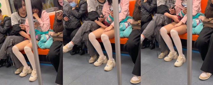 上海地铁7号线惊现小情侣抠B高峰期无视路人当众爱抚