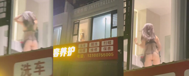 洗车新套路?湖北随州汽车养护二楼惊现落地窗前情趣内衣女子